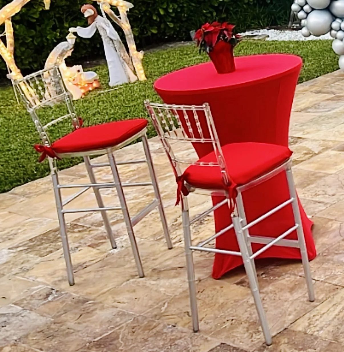 Our Clear Chiavari Cocktail Chairs bring a modern, elegant touch to any event. Designed for use with high-top and cocktail tables, they feature a transparent frame that blends seamlessly with any décor style, plus cushioned seating for guest comfort. Perfect for weddings, corporate events, holiday parties, and upscale celebrations, these chairs create a sophisticated look while keeping spaces light and open. Available for rental across Miami-Dade and Broward.